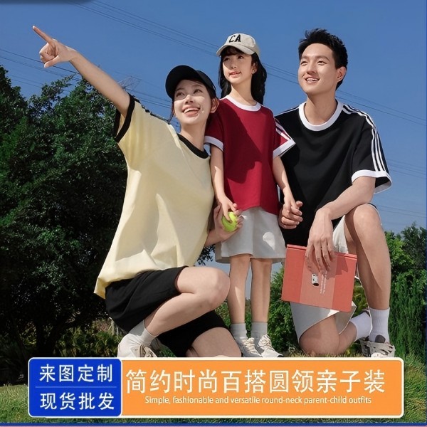 简约时尚撞色3条杠圆领t恤