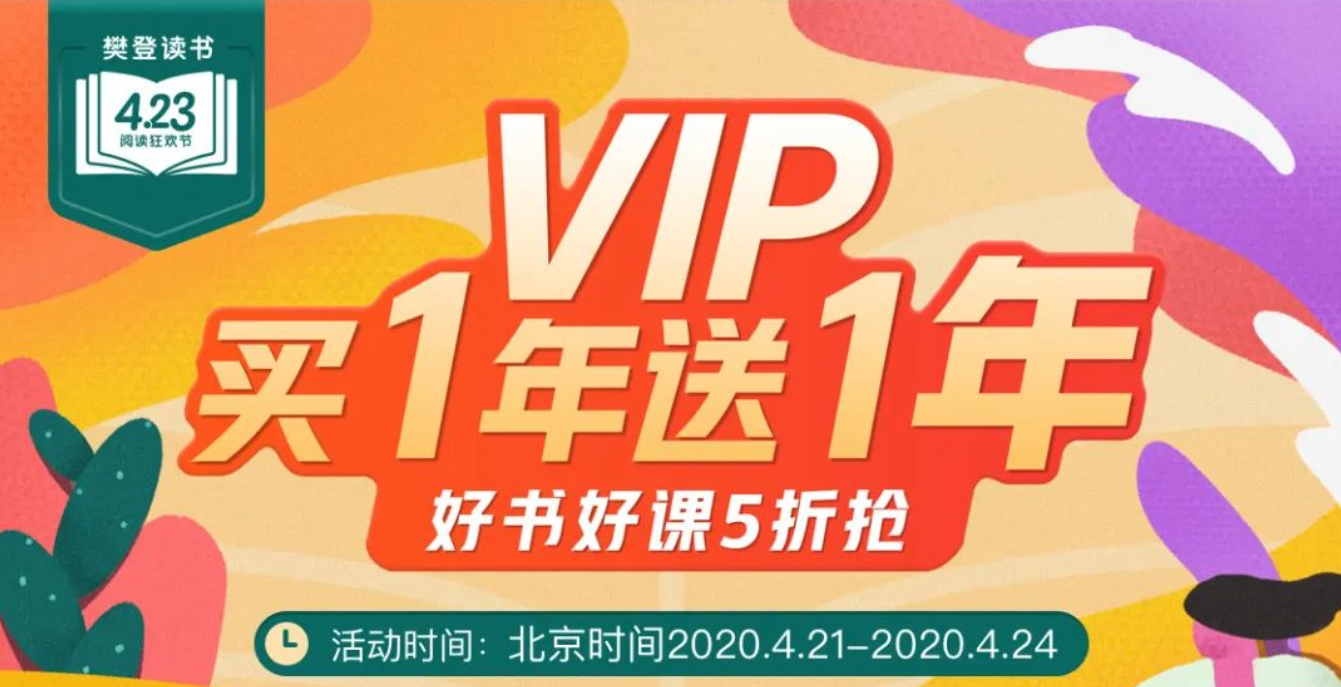 - 樊登读书 | 423大促预约开始!VIP买1年送1年,全场好书好课5折抢!